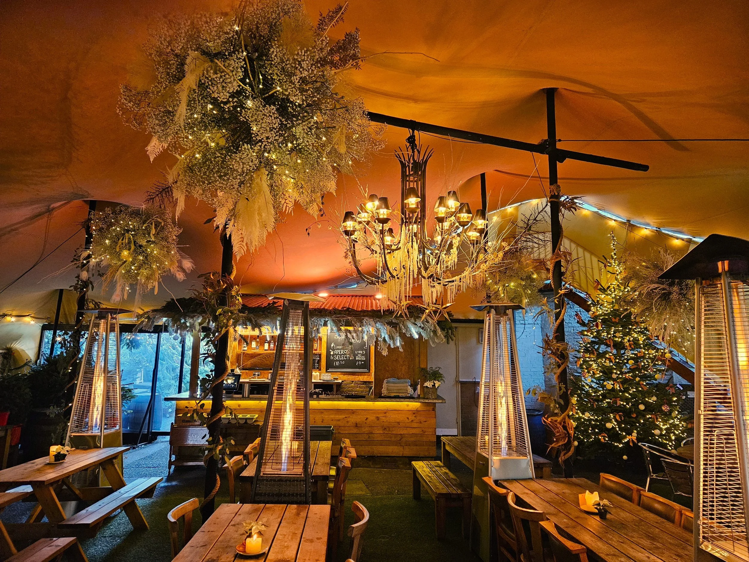 Tucked away behind us is our huge beer garden, partially shaded in the summer and fully covered & heated in the winter.